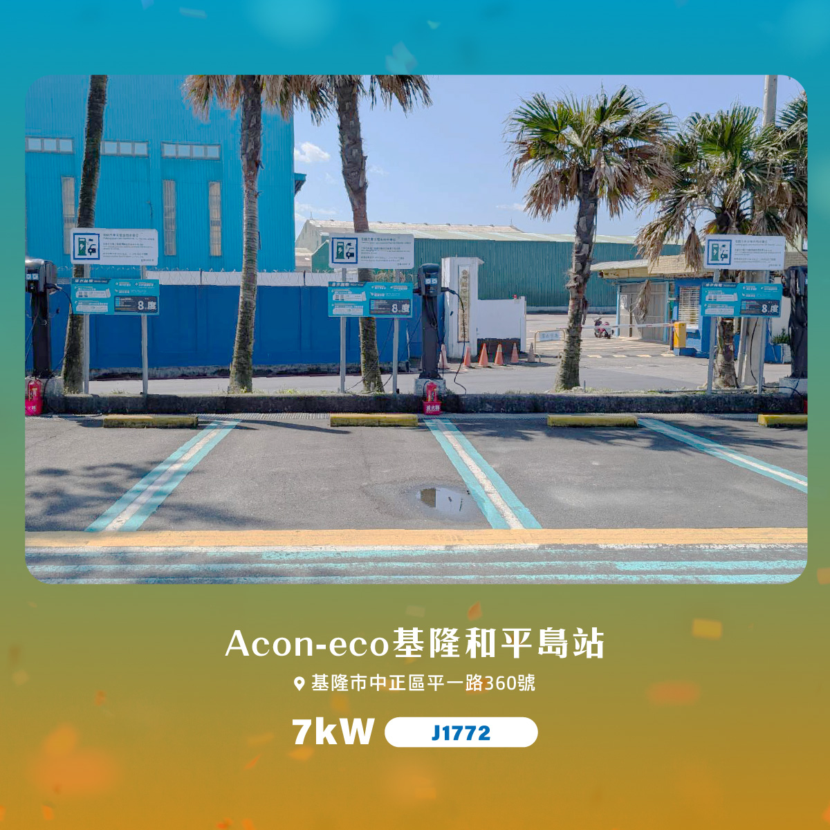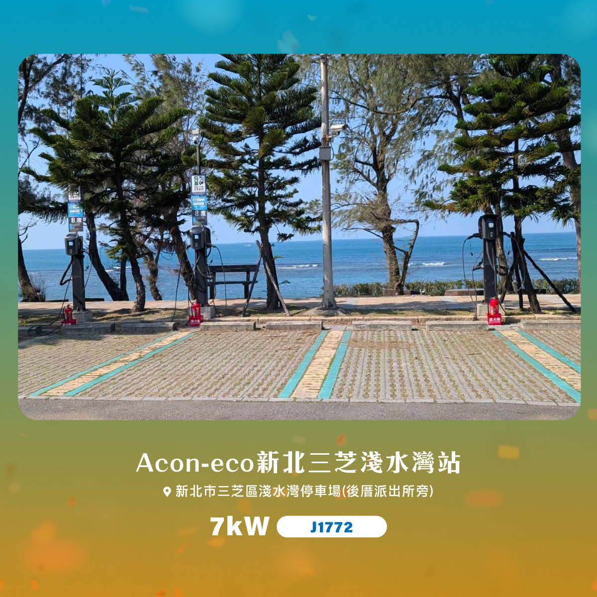 天氣轉熱,趁著天氣好來一趟北海岸之旅吧。Acon-eco 於淺水灣、中角灣、和平島停車場設置 7kW (J1772) 充電站,為遠道而來的旅客提供電動車充電服務!為慶祝開幕,於 2026 年 4 月 14 日至 20日充電每度 4 元,把握機會搶先充!
