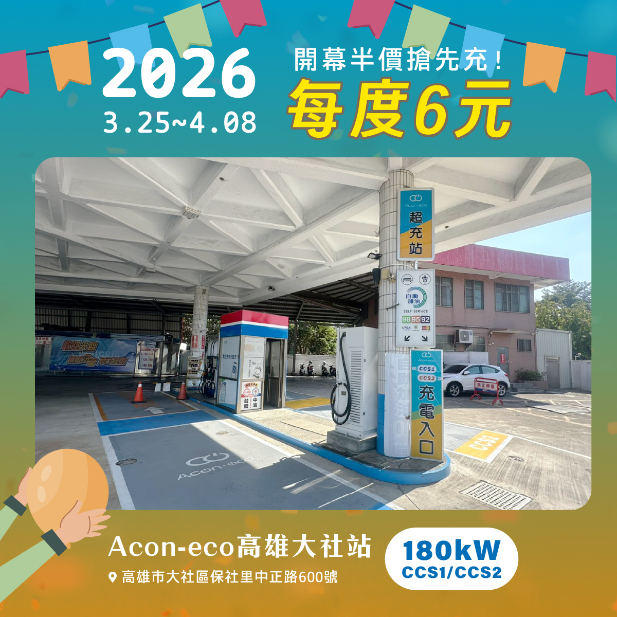 Acon-eco⚡台糖加油站 首波開幕慶!180kW 限時 6元/度