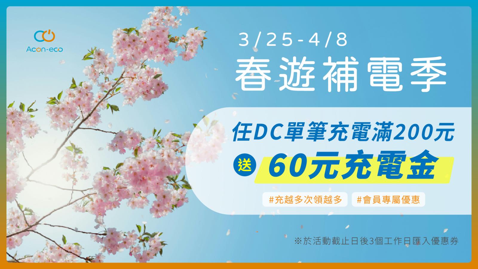 Acon-eco 春遊電力補給,DC 充電滿 $200 送 $60,優惠無上限!